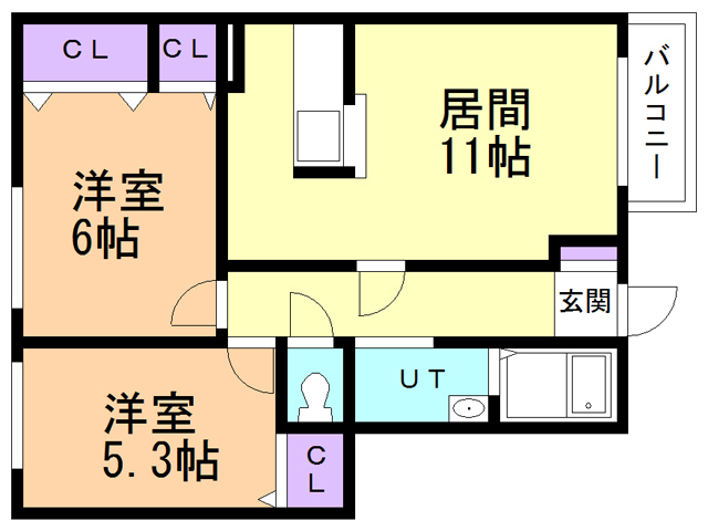 | 間取り | 2LDK | 間取り詳細 | LDK11 洋室6 洋室5.3 |