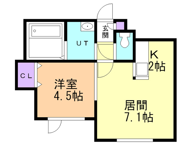 | 間取り | 1DK | 間取り詳細 | D7.1 K2 洋室4.5 |