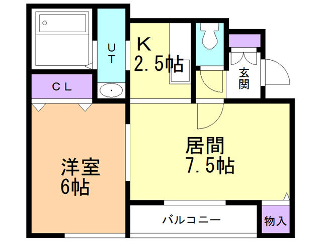 | 間取り | 1LDK | 間取り詳細 | LD7.5 K2.5 洋室6 |