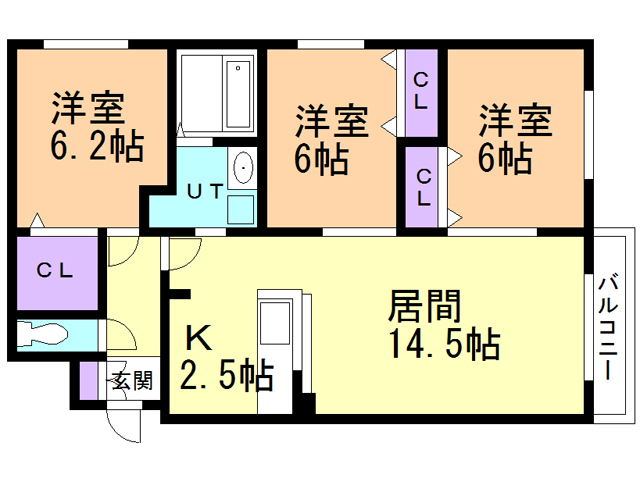 | 間取り | 3LDK | 間取り詳細 | LD14.5 K2.5 洋室6 洋室6 洋室6.2 |